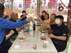 乾杯をしながら「美味しいね」「あなたも召し上がって」「久しぶりのコーラだ」とちょっとしたパーティーのようで皆様大喜び😊