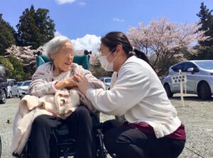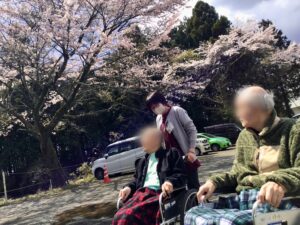 また、お花見会に参加できなかった利用者様も散歩にお誘いし、春の訪れを感じて頂くことができました。