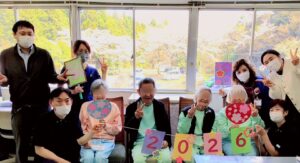利用者様から「青空に映えるね」「見事だな」と歓声が上がり満面の笑顔。